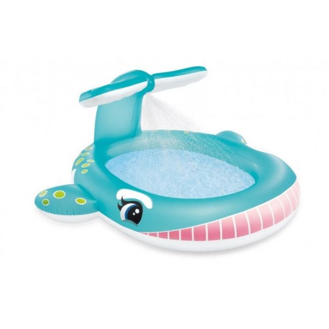 Забавная модель для ребенка от 2 лет - детский надувной бассейн 201х196х91см "Кит" с распылителем. Объем - небольшой, а бортики - низкие, поэтому малыш будет всегда под присмотром. Вода быстро прогреется от лучей солнца.