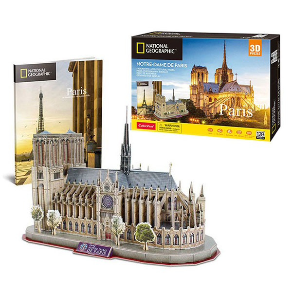 În timul jocului cu puzzle 3D împreună cu copiii tăi, le poți povesti că „Catedrala Notre Dame” poate găzdui aproximativ zece mii de oameni. Clopotnița locală a servit ca turn de veghe, din care se putea observa de departe înaintarea inamicului și anunța localnicii din timp pentru ca aceștia să aibă timp să se evacueze. Fiecare intrare a catedralei este străjuită de statui de piatră ale Sfânților. În Evul Mediu, Notre Dame de Paris era o Biblie pentru cei care nu știau să citească – întreaga istorie a creștinismului de la cădere până la Judecata de Apoi a fost pictată clar în numeroasele sculpturi care decorau clădirea. Iar himerele și garguile înfiorătoare-bizare, care privesc de pe acoperișul fluxului nesfârșit de enoriași, au adunat o cantitate incredibilă de legende și mituri despre semnificația secretă a simbolismului temp