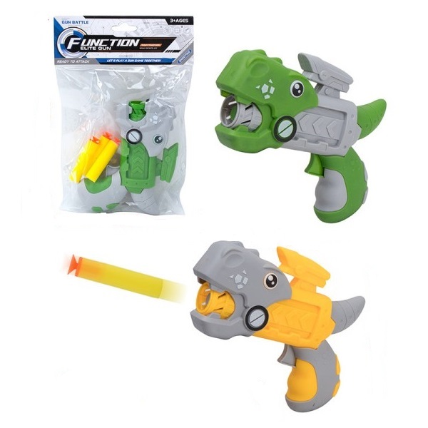 В комплекте – оружие в форме динозавра, 3 мягкие пули.