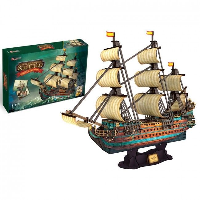 În timul jocului cu puzzle 3D împreună cu copiii tăi, le poți povesti că galeonul San Felipe, lansat în 1690, a fost una dintre cele mai frumoase nave spaniole ale epocii sale. El a condus Armada Spaniolă. Rolul lui San Felipe în războiul împotriva britanicilor și francezilor a fost de a proteja așezările și porturile spaniole și de a transporta aur din Lumea Nouă.
