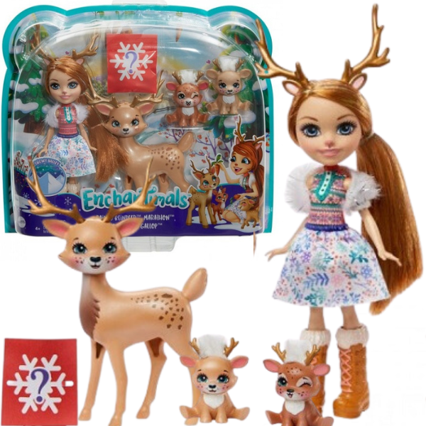 [:ru_RU]Окунись в мир чудес с волшебными девочками Enchantimals! В игровой набор Семья Северной Оленицы Рейни Enchantimals входит кукла Оленица Рейни, 3 оленят – Марафон, Йогер, Галоп, и 1 мешочек с 3 аксессуарами-вкусностями внутри. Зимний образ Рейни сделает игру еще интереснее.