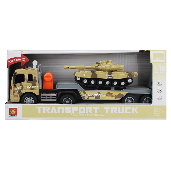 • Для детей от 3-х лет.[trim][:ro_RO]Camionul transportator cu tanc va oferi distracție creativă. Mașina este echipată cu efecte sonore și luminoase, așa ca distracția va fi și mai realistă.