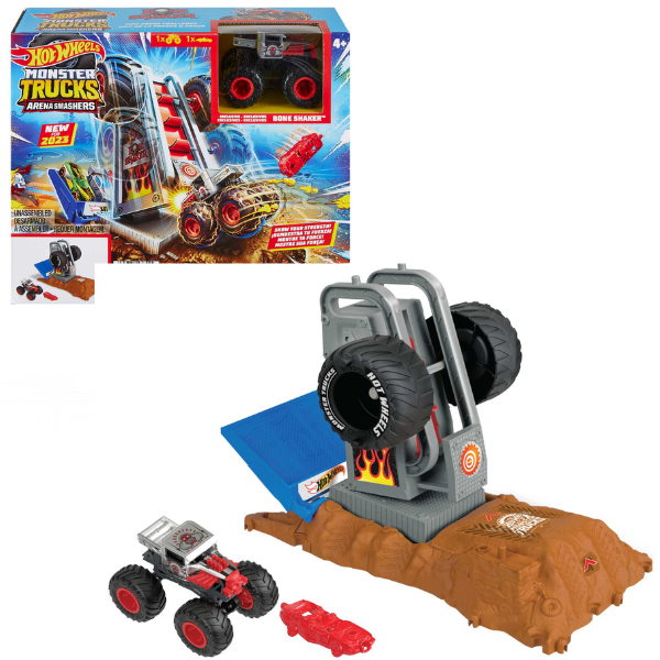 Setul include un camion monstru Hot Wheels, iar seturile pot fi combinate pentru a construi o arenă pentru camioane monstru.