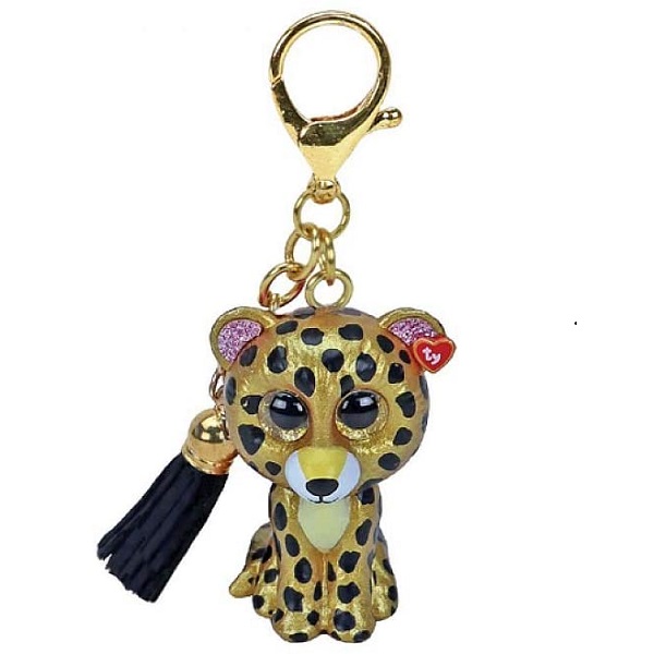 Леопард Sterling , черный, пятнистый золотой брелочек с соответствующей кисточкой и золотистой клипсой.