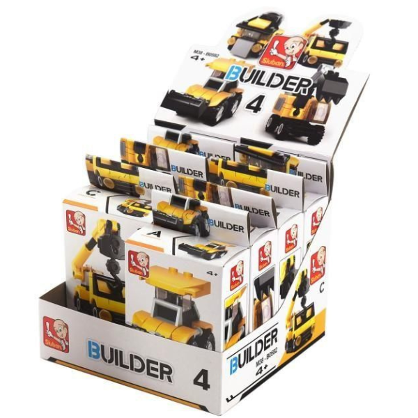 [:ru_RU]Конструктор Builders от Sluban представлен в ассортименте. Каждый комплект из 4 представляет собой интересную и уникальную модель строительного транспорта для сборки.