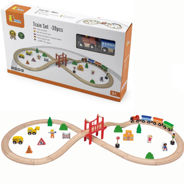 [:ru_RU]Игровой набор Железная дорога от Viga Toys – это 39 гладко отшлифованных элементов из дерева. Вместе они составляют архитектурную композицию, где каждая деталь на своем месте.