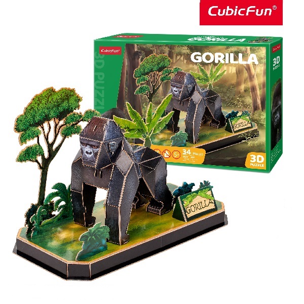O metodă veselă de a cunoaște lumea fascinantă a animalelor sălbatice împreună cu noua colecție de puzzle-uri 3D CubicFun. Modelul un număr mic de piese, însă detaliile puzzle-ului sunt precise, iar copilul nu va avea dificultăți în asamblare. Modelul asamblat este o gorilă care stă pe fundalul faunei frumoase a Africii.