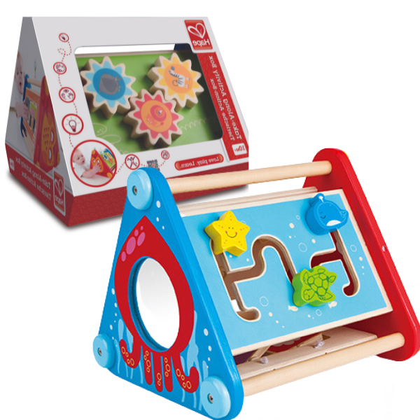 [:ru_RU]Все пять сторон головоломки таят в себе множество развивающих игр. Лабиринт, по которому можно передвигать фигурки животных; три шестерёнки с африканскими животными; вращающиеся картинки,[trim][:ro_RO]Triunghiul Hape cu 5 activitati diferite, ideal pentru orice copil cu varsta peste 10 luni. Umple ziua si alunga plictiseala cu aceasta cutie plina de provocari si actiune. Acest joc cu mai multe activitati pe 5 fete, are angrenaje, bile, blocuri rotative, multe culori si miscare, precum si un labirint si-o oglind pentru a reflecta zambetul copilului tau. Numiti animalele de fiecare parte a cutiei. Unde traieste fiecare? Promoveaza abilitatile motorii fine, recunoasterea animalelor, recunoasterea culorilor si altele.