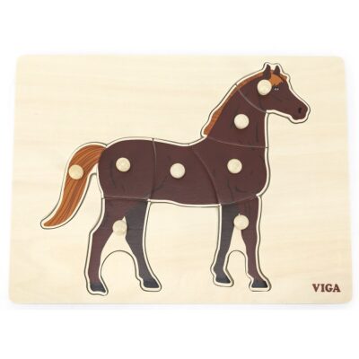 Puzzle din lemn Montessori cu buton "Cal"